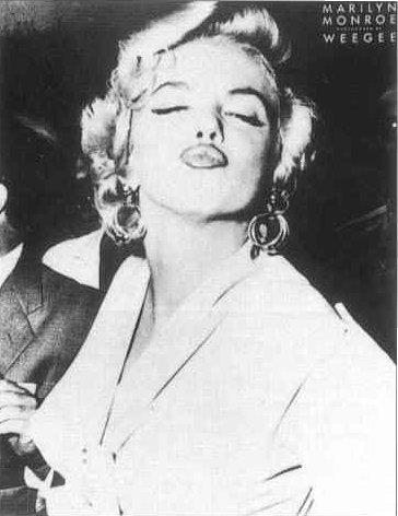 | Weegee Kiss: Famous photo by Weegee of Marilyn blowing a kiss. Out of print, very rare. Poster, 23" x 29". Sold Out. Check with us to see if we have more in stock. |